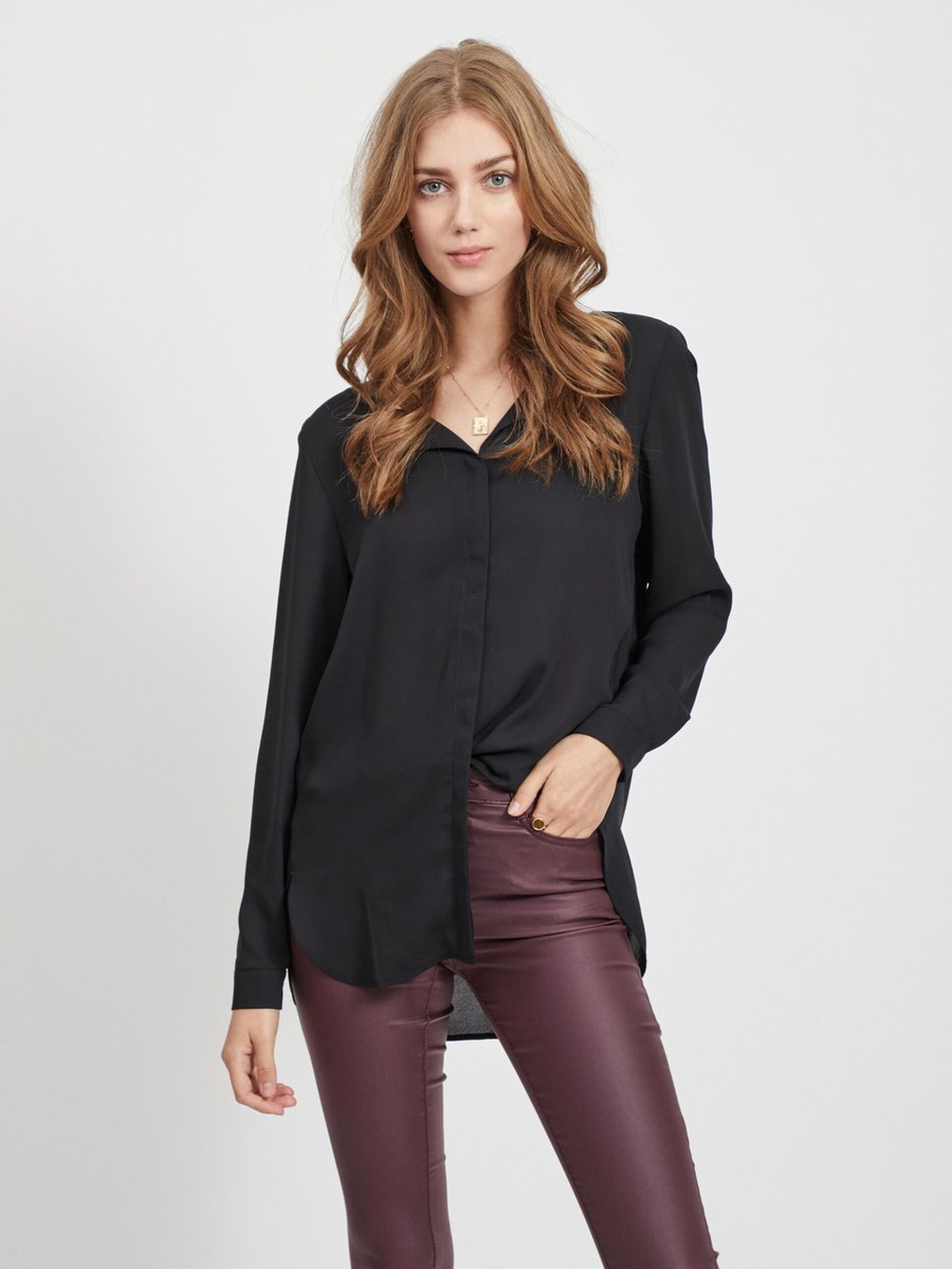 Tuo vaatekaappiisi monikäyttöinen klassikko tällä VILA Lucy Halkiokauluksisella paidalla! Tämä ajaton ja yksinkertainen naisten paita on valmistettu 100 % polyesteristä, joka on miellyttävän kevyttä materiaalia. Paidassa on tyylikäs V-kaula-aukko piilonapituksella, pitkät hihat ja takaa hieman pidempi helma, mikä antaa paidalle modernin ja laskeutuvan ilmeen. Klassinen musta väri tekee siitä täydellisen valinnan niin arkeen kuin juhlavampaankin iltakäyttöön.