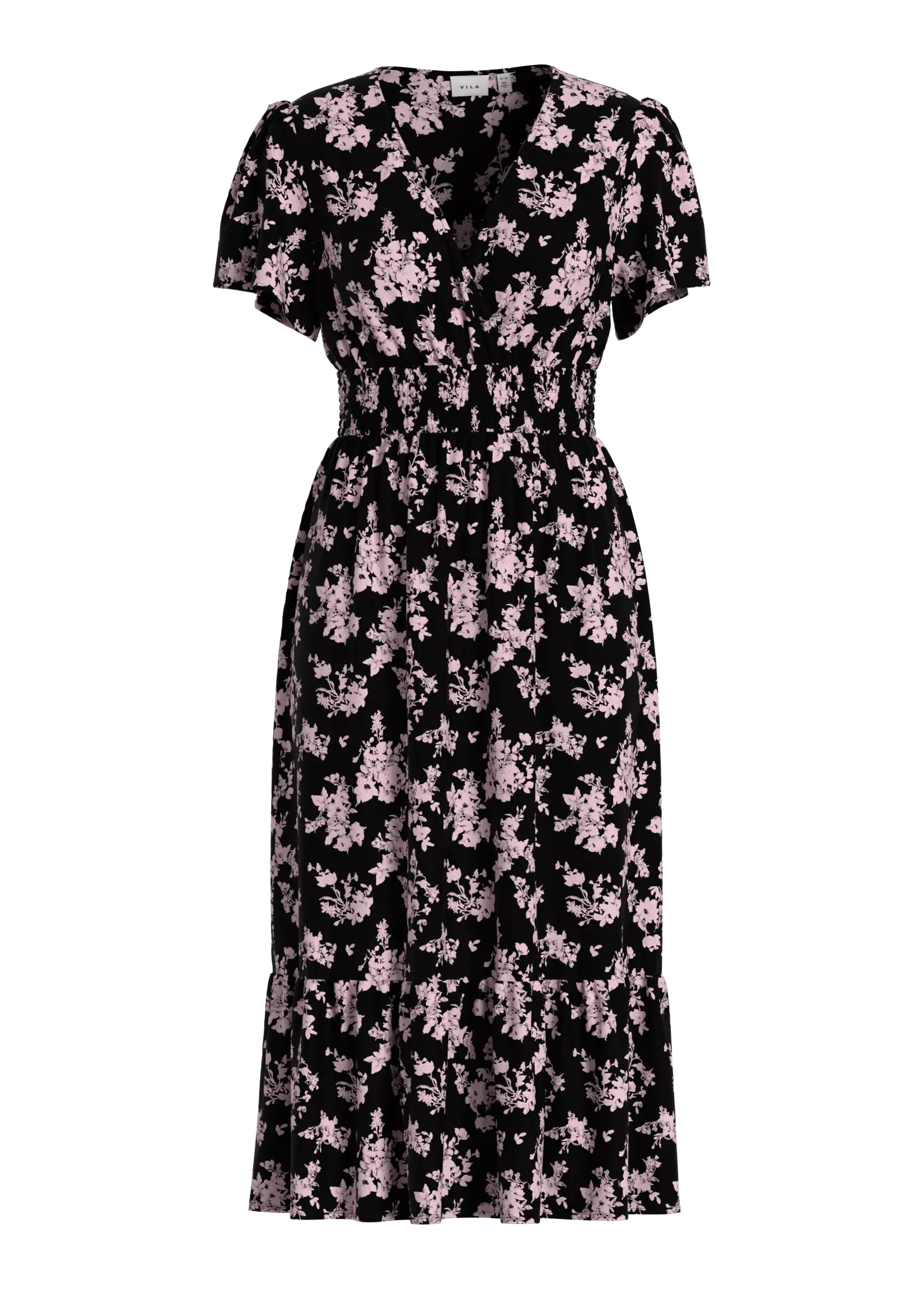 VILA VIMATTHILDE Maksimekko | Black AOP Cherry | Kierrätetty materiaali