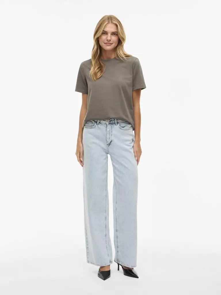 VILA Vinora Ruskeanharmaa T-paita | Pehmeä Luomupuuvilla