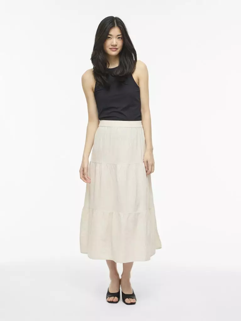 VILA VIPRISILLA Maksihame | Super Light Natural Melange | Viskoosi, Puuvilla & Pellava