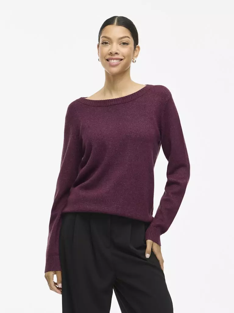 #vila #ril #neulepusero #pyöreäpääntie #viskoosi #nailoni #polyesteri #viininpunainen #fig #naistenmuoti #arki #klassikko #mukava #vastuullinen #ekologinen #tyylikäs
